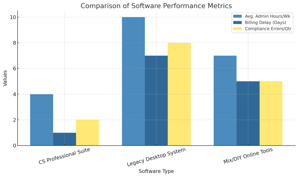 - The global SaaS market is expected to hit $300 billion by 2025, with over 85% of SaaS budgets spent on renewals, not new applications. Firms are consolidating onto “platforms”—like CS Professional Suite—for efficiency.